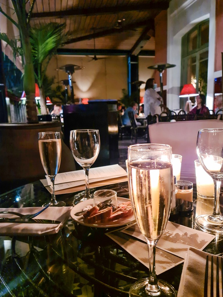 Given the choice, we dine outside (it’s late February but it’s still warm enough) on the colonial-style veranda. Alcohol laws in Marrakech are such that public consumption of alcohol isn’t permitted, but the tree-lined veranda area is shielded enough to allow guests to enjoy a glass of wine al fresco.