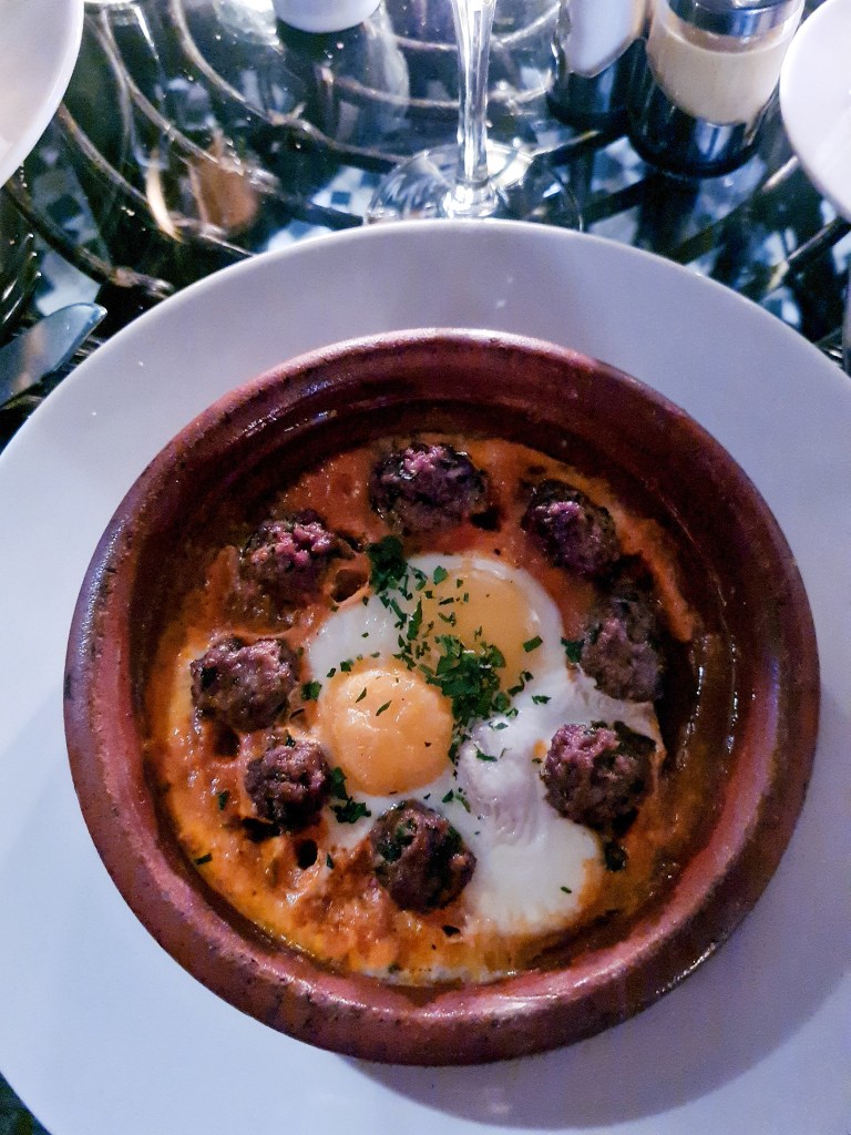 For the main course we order skewers of deliciously meaty monkfish served with curry and white rice, and a more local choice: beef kefta tagine with eggs and cinnamon semolina. I haven’t had semolina since childhood and am a little skeptical about the combination, but the dish achieves the unique fusion of sweet, savoury and spice that Moroccan cuisine does so well.