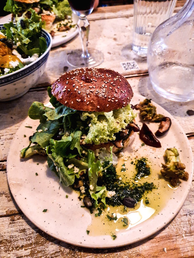 Shit’s On Fire Yo: shiitake mushrooms, broccoli, soy, pesto, brioche bun – 15eur