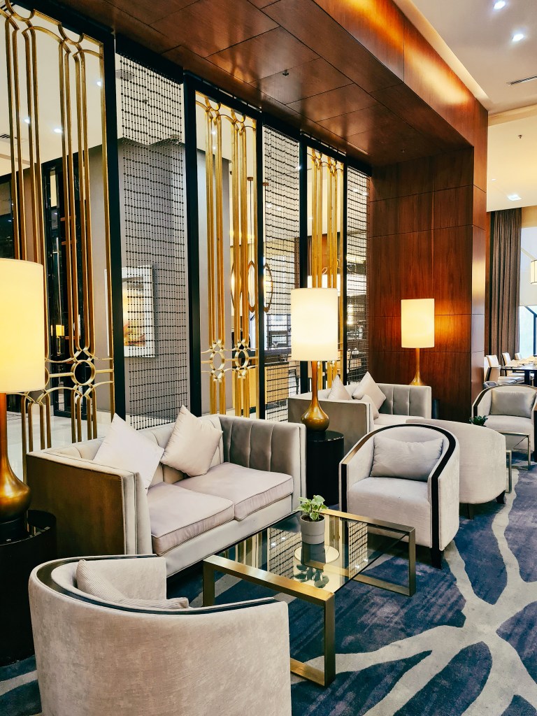 The hotel itself stands out against the Amman skyline with its waterfall structure, cascading from the penthouse suites on the top floor to leafy urban streets below. As the name suggests, this is not a traditional hotel but rather a complex of luxury suites, each complete with a sleeping, sitting and eating areas. The Grand, Royal and Superior suites are miniature apartments with separate rooms for living and sleeping, where the studio suites have everything in one space. It’s a hotel designed to be equally suitable for short hotel visits as for extended stays in the city. This flexibility results in a mix of clientèle: families with children, couples, older groups of friends, and people travelling on business.