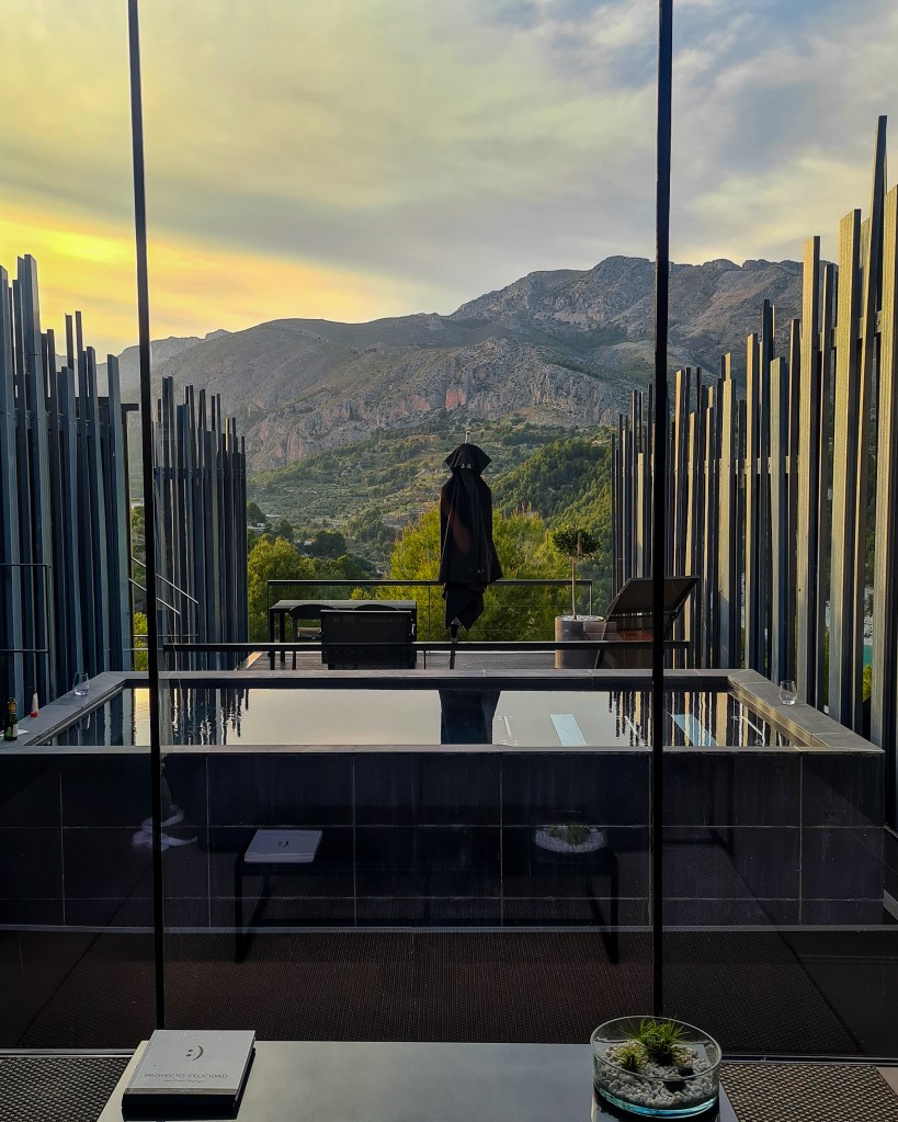 We headed straight for the best seat in the house: the heated jacuzzi pool on the villa’s sun deck. It’s a glorious sun trap with plenty of space for two to stretch out and take in the quiet and sounds of the surrounding nature. From the sun deck you can see all the way to the Guadalest reservoir, and if you’re feeling a bit more energetic you can follow a 5k walking trail from the resort directly to the turquoise waters, where it’s possible to swim.