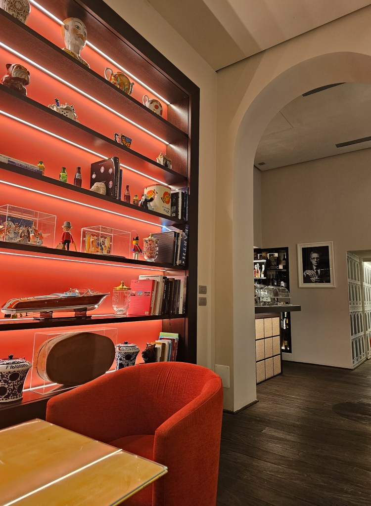 Despite Palazzo Segreti being just steps from the busy pedestrian street of Via Dante, which is full of life in the evenings with tables set outside and groups flocking for drinks with a view of the castle, the French windows close to create a haven of peace and quiet. It’s unique in Milan to feel so close to the action yet still able to tune out when needed.