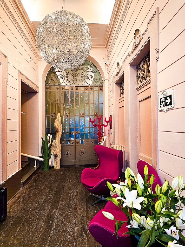 Palazzo Segreti bucks this trend completely, embracing a more tasteful approach. The entrance would be spectacular by normal standards – a traditional city centre palazzo with elaborate crown mouldings, curvaceous designs in wrought iron, up-lit arched ceilings and (what look to be) original dark wood floors – but the lobby is kept simple, all in white with a few statement sculptures in bright colours.