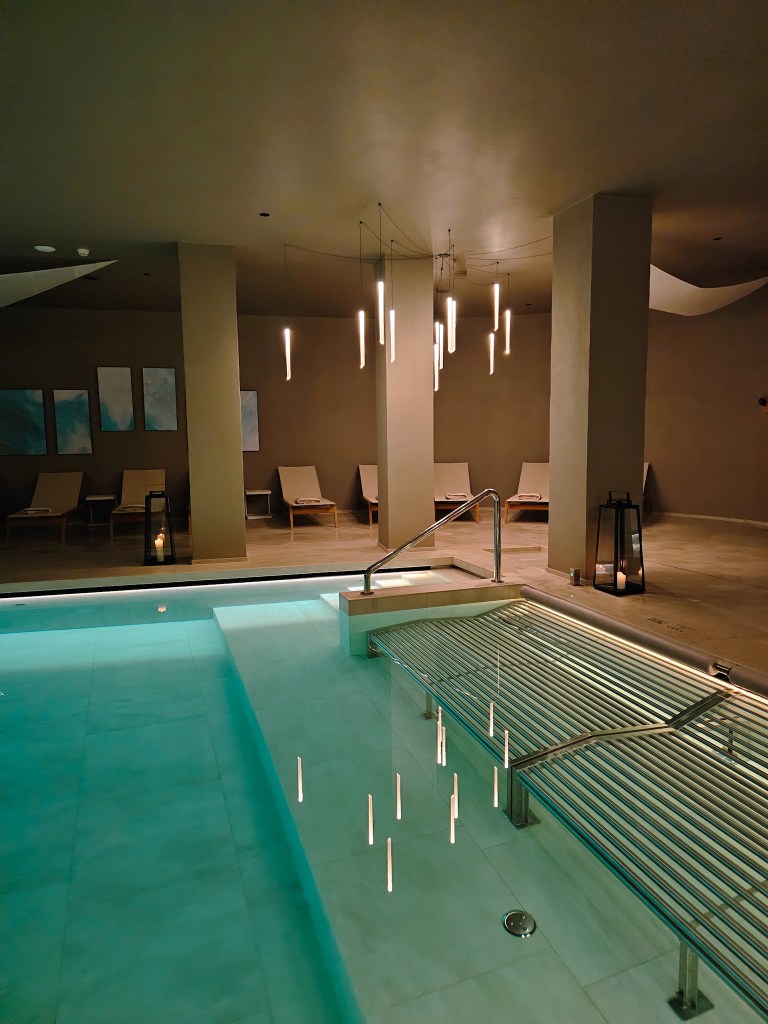 We indulge in a few hours of relaxation before dinner, heading downstairs to EALA’s luxury spa. It is not uncommon for a hotel of this standard to offer spa facilities, but the offering at EALA is quite simply unrivalled. A spiral staircase leads to a full-sized spa resort, boasting two full-sized pools, treatment centre, and a huge multi-room area with several saunas, steam room, ice room, plunge pools, hammam and relaxation rooms.