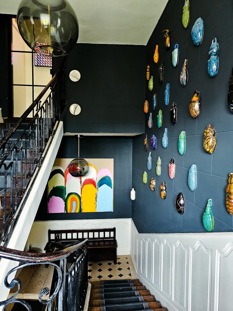 Wandering around the castle is akin to visiting an art gallery; iridescent ceramic beetles line the staircase and every corner is filled with another surreal artwork. Nature plays an important role, from felt birds in a nest to ceramic depictions of distorted landscapes. Neon lighting leads to the upper floor, which doubles as a boutique gym and massage treatment room (a masseur can be organised on request). There’s also a small conference space, making the hotel an ideal choice for corporate events or away days.