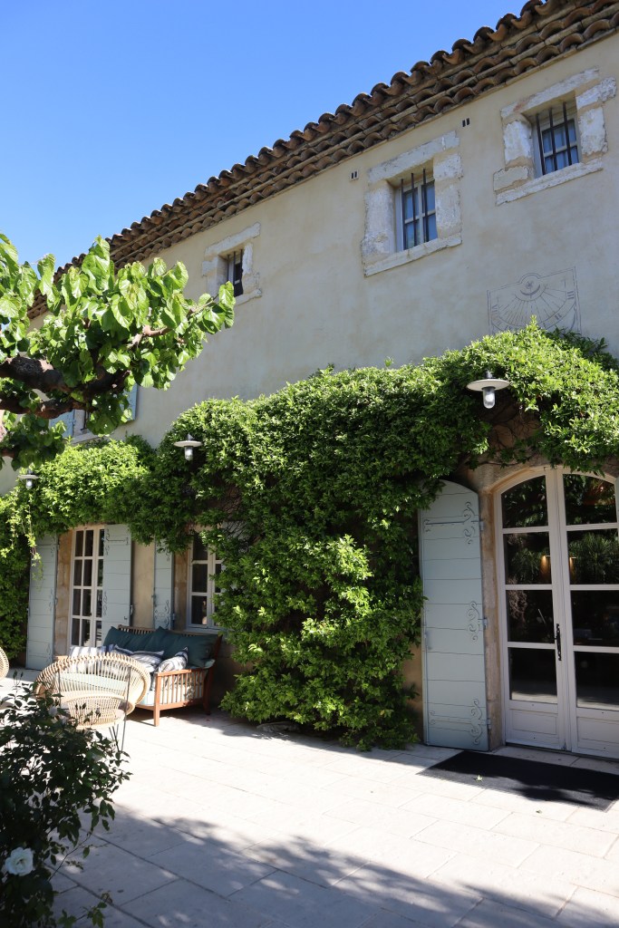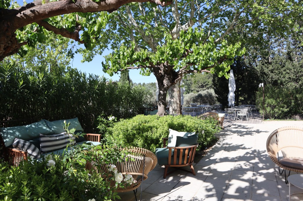 This feels like a place to spend a good amount of time, to really allow yourself to unwind and get acclimatised to the joie de vivre. We note that the majority of other guests staying at the hotel during our visit are speaking French – probably visitors from elsewhere in France enjoying a staycation. The clientele is varied, from couples of all ages to families with children. Visitors are drawn to the hotel for different reasons: we spot a couple on a babymoon, who spend their time relaxing by the pool, while the families take advantage of the sports activities and excursions on offer. The hotel provides for all eventualities, with a menu of experiences that includes renting a vintage cabriolet (the undulating roads of the Alpilles becoming a makeshift film set), borrowing electric bikes, or simply taking in the artworks on display.