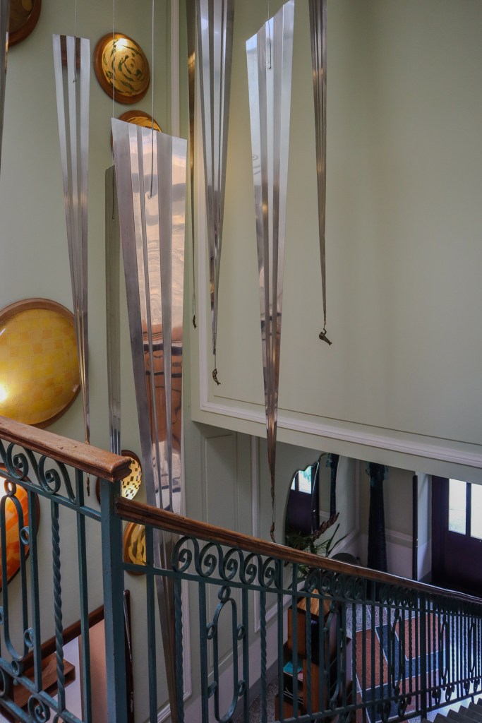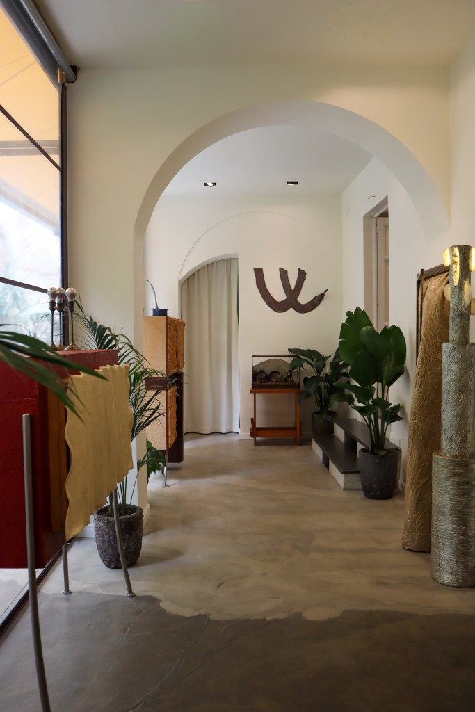 This encounter epitomises the experience of staying at Atelier Inès – beauty at every turn and a place filled with meaning and sentiment. It’s a delight for the eyes from the very moment you enter the building, through a hallway with angular golden spikes dangling the height of two floors and amber glass sconces on the wall. Before you reach the front desk, you encounter a room with all the hallmarks of a museum space: stark white and dotted with just one or two intentional objects or artworks.